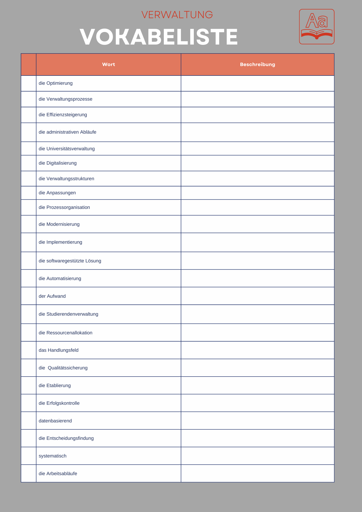 ➡️Lernen Sie neuen Wortschatz zu dem Thema Verwaltung Universität