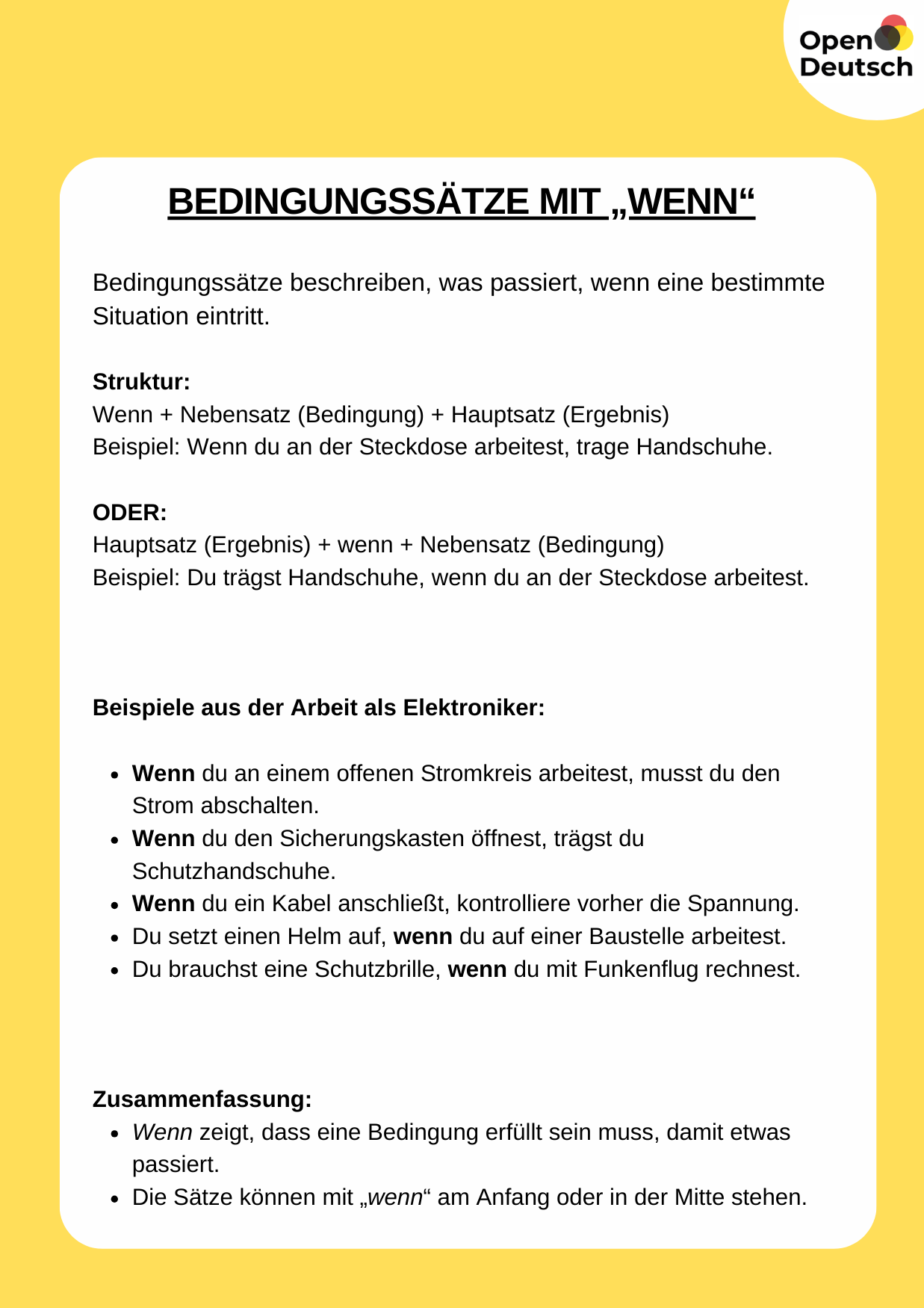 • Hier ist eine Übersicht, wie du Nebensätze mit wenn bildest.
